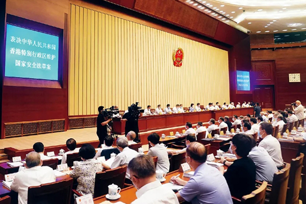 ????《中華人民共和國香港特別行政區(qū)維護(hù)國家安全法》對香港維護(hù)國家安全制度機(jī)制作出了法律化、規(guī)范化、明晰化的具體安排,為維護(hù)國家安全和香港長治久安、長期繁榮發(fā)展,保障香港居民依法享有的權(quán)利和自由,保護(hù)外國人在香港的合法權(quán)益,增強(qiáng)外國投資者對香港的信心,確保“一國兩制”事業(yè)行穩(wěn)致遠(yuǎn),提供了法律支撐和根本保障。圖為2020年6月30日,十三屆全國人大常委會第二十次會議表決通過《中華人民共和國香港特別行政區(qū)維護(hù)國家安全法》。新華社記者 劉衛(wèi)兵/攝