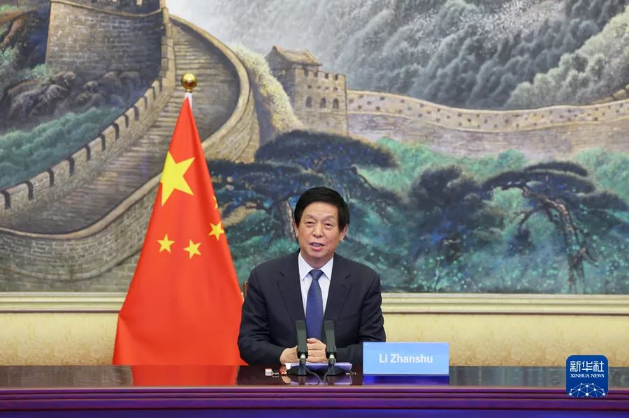 全國人大常委會(huì)委員長栗戰(zhàn)書3月22日在北京人民大會(huì)堂以視頻方式同克羅地亞議長揚(yáng)德羅科維奇舉行會(huì)談。